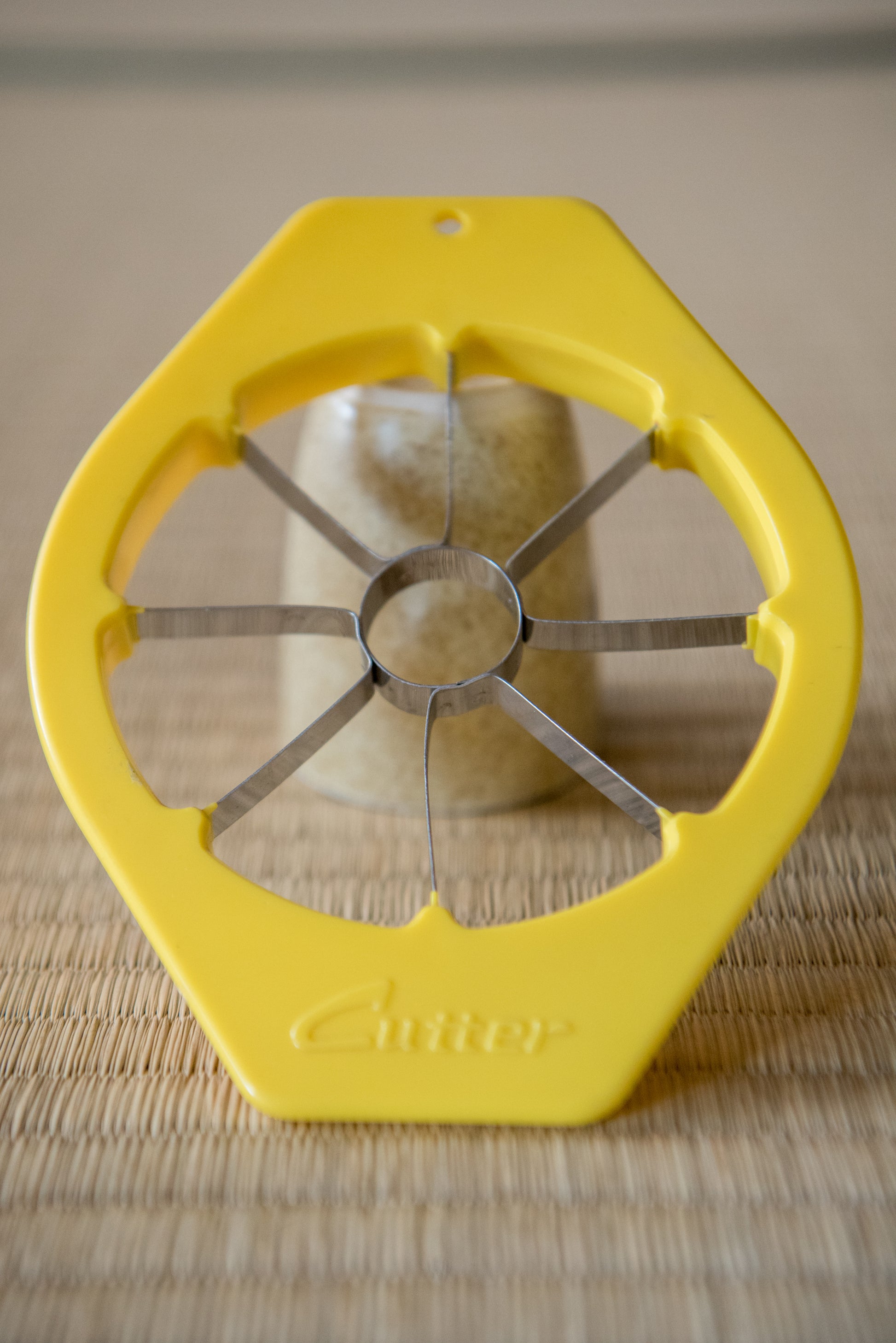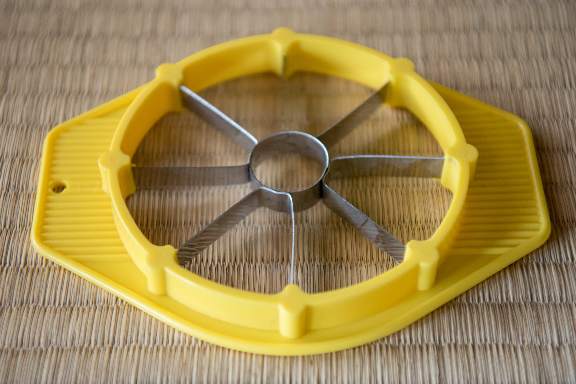 Retro Japanese Apple Slicer "Cutter" in bold nostalgic yellow, from Showa-era
