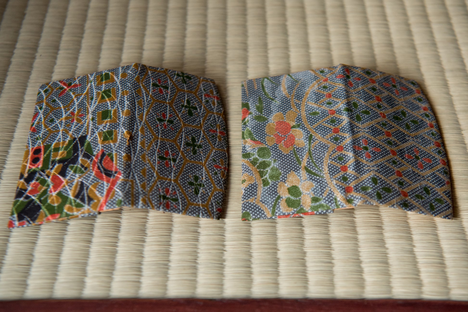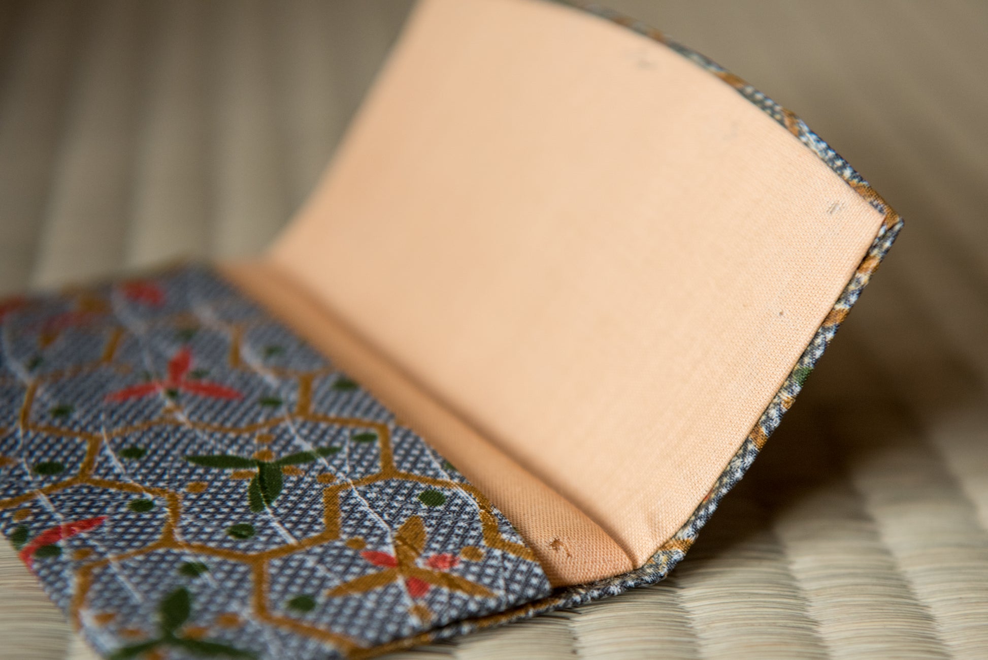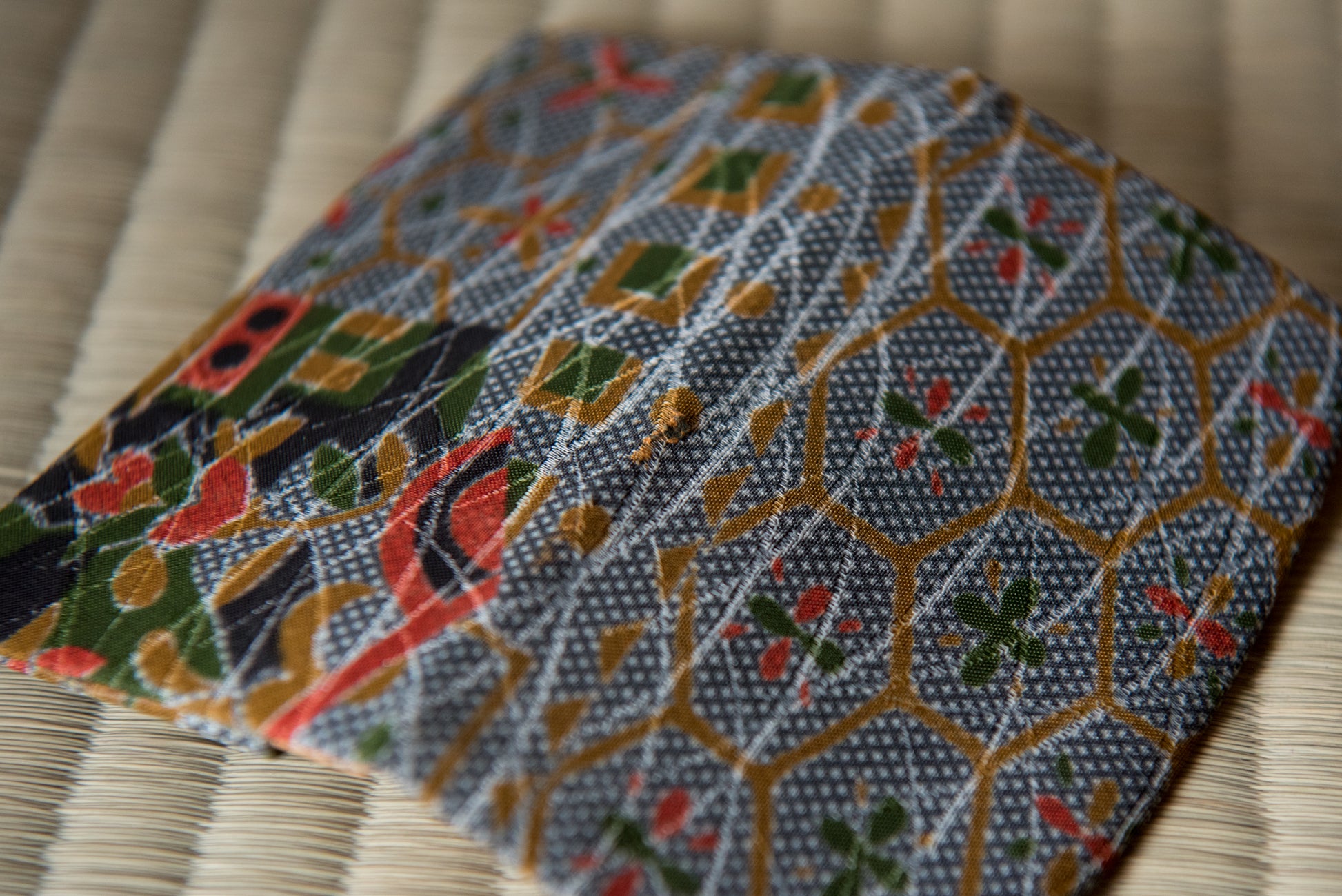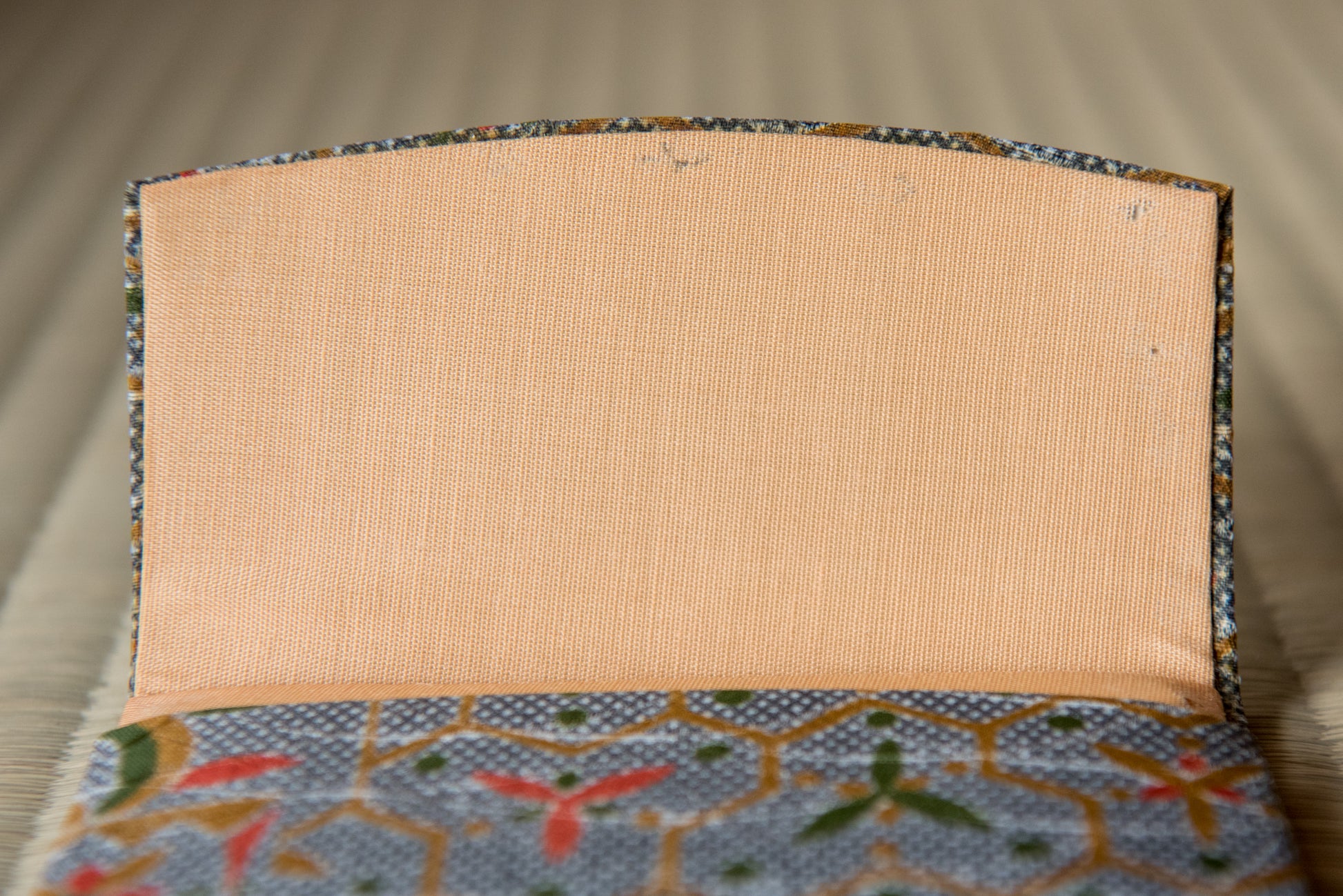 The exterior fabric of both wallets are a nice pattern made of many complimentary colors. While I know that Japan has traditionally made some things like this out of former kimono fabric, I do not know if this particular coin purse is made from kimono fabric, or not, so I can't say for certain. The interior fabric is a soft yellow. There is no clasp or closure.