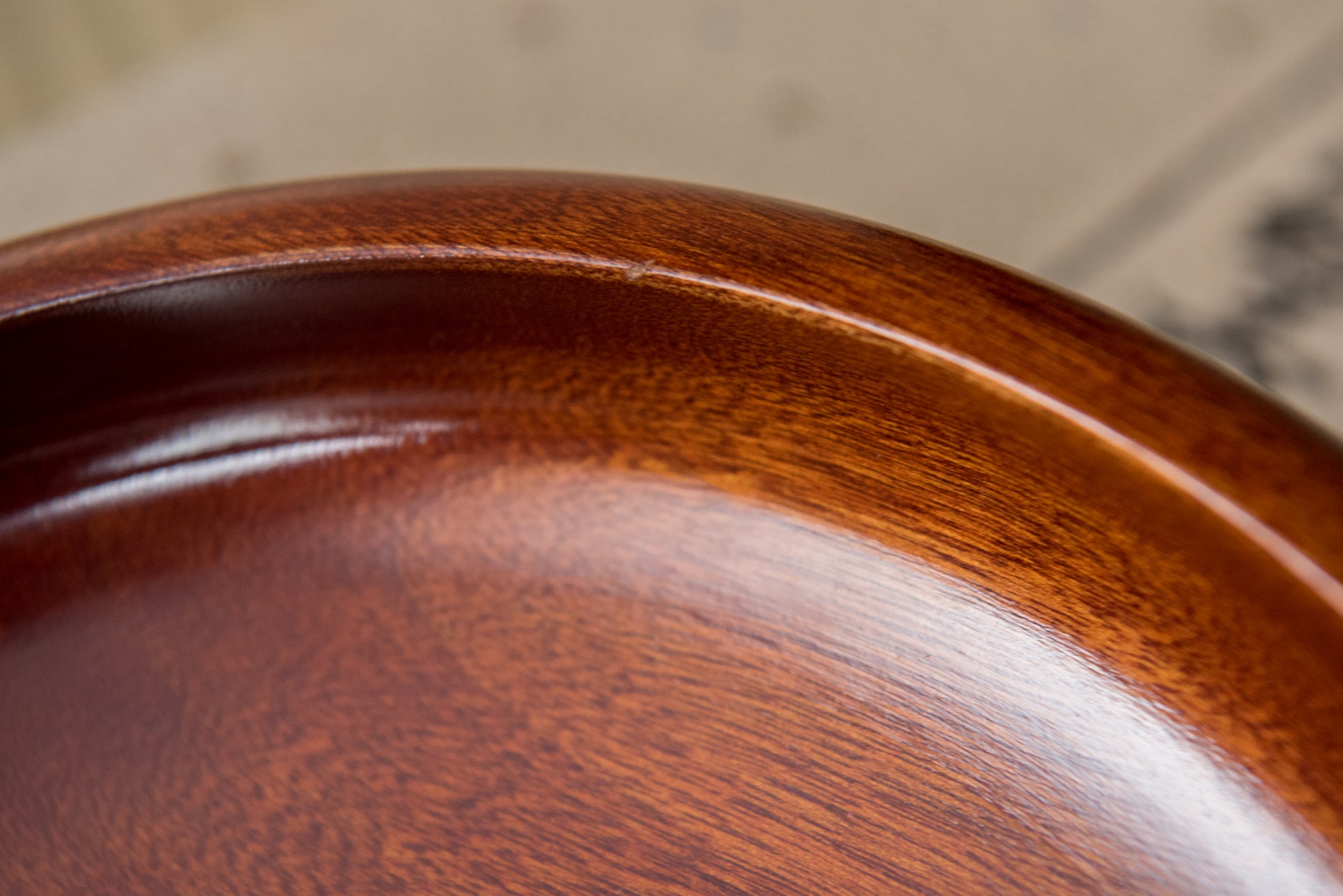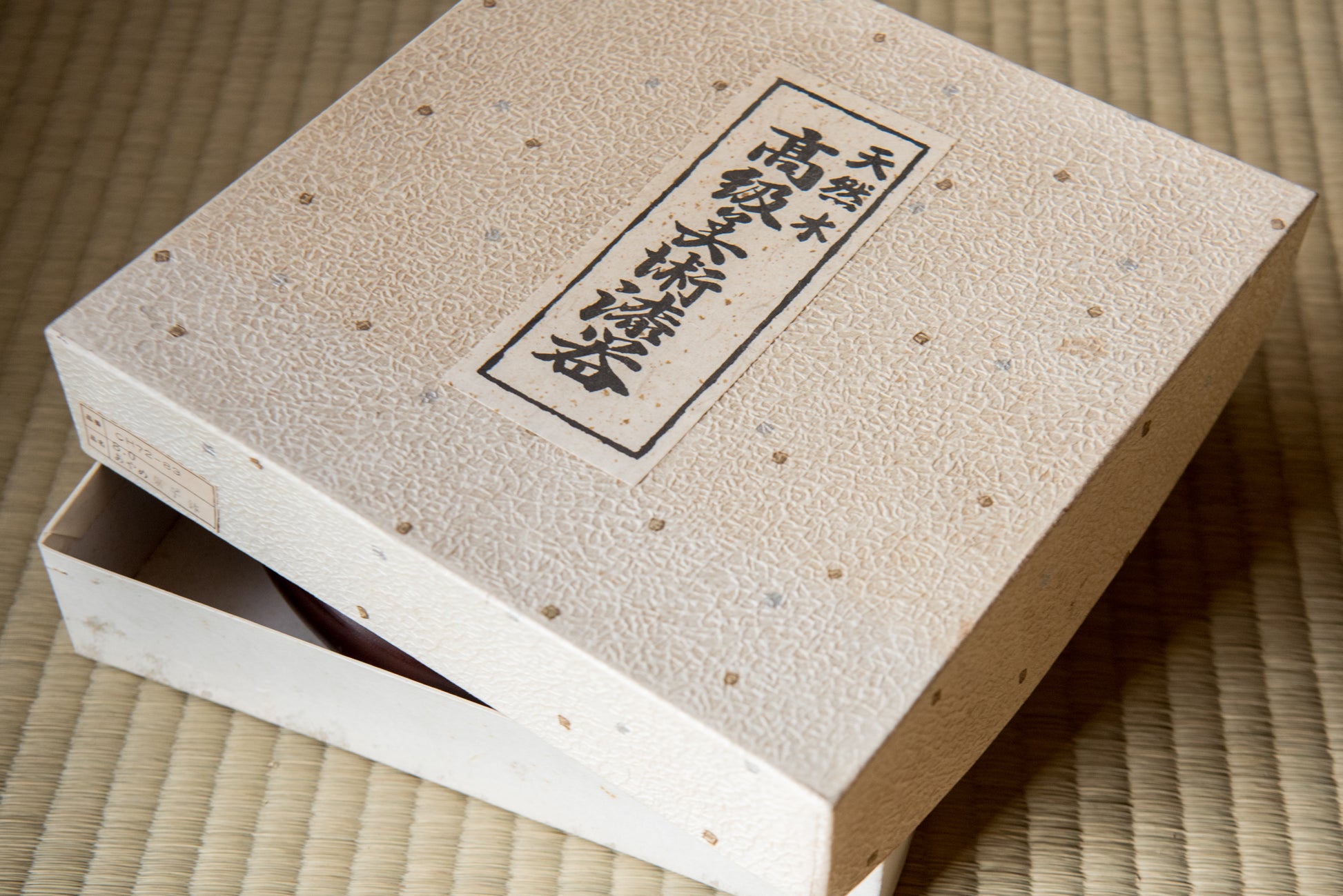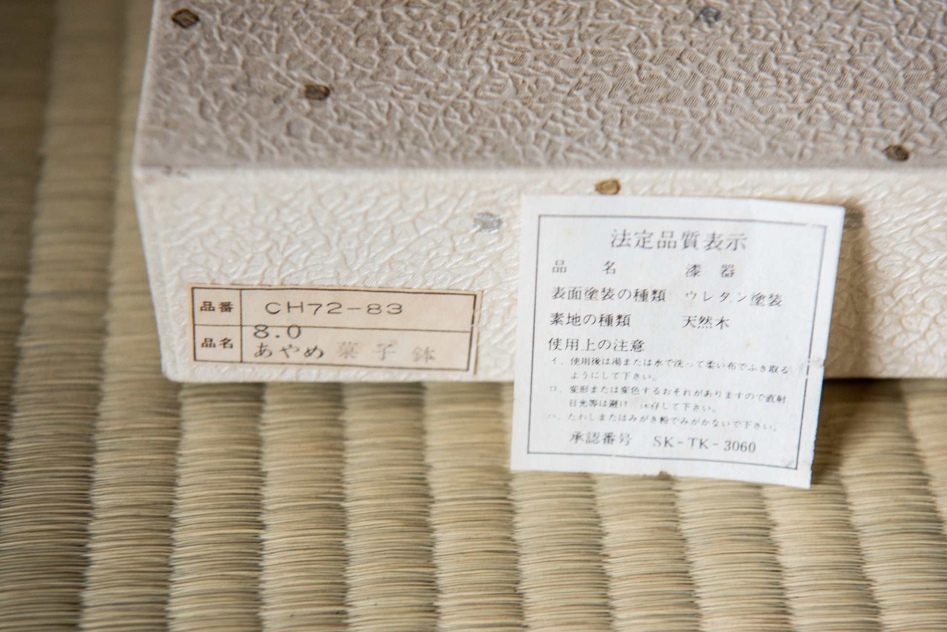 "New" in box vintage item. This is a breathtaking wooden tray with a hand carved iris flower, from Japan's Showa-era. The wood has a lacquer varnish, which really brings it to life. The writing on the backside of the tray translates roughly to "Tenrikyo East Kamiura Church, temple completion commemoration, September 2, 1992".