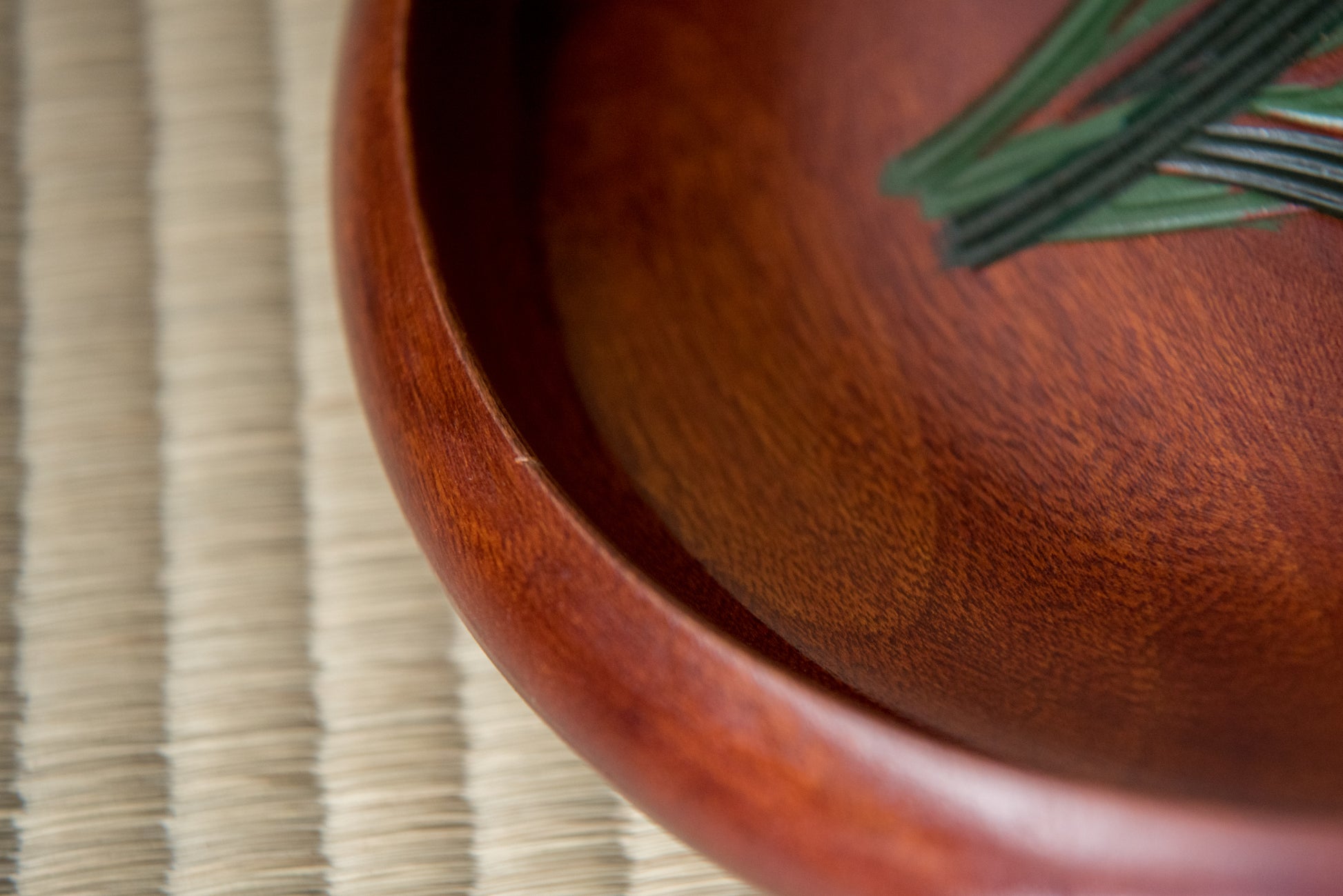Vintage Japanese Hand-Carved Wooden Tray with Iris Flower, in box