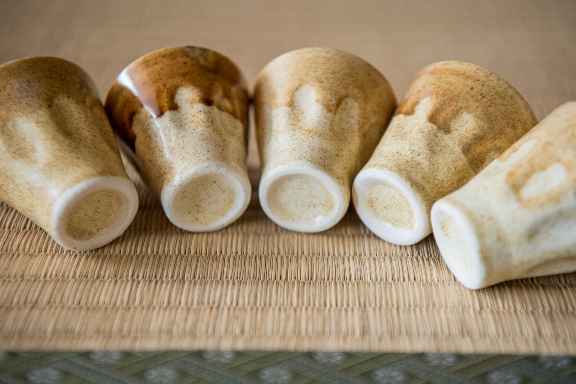 Sake Cups: Height ≈5cm, Diameter ≈5cm.