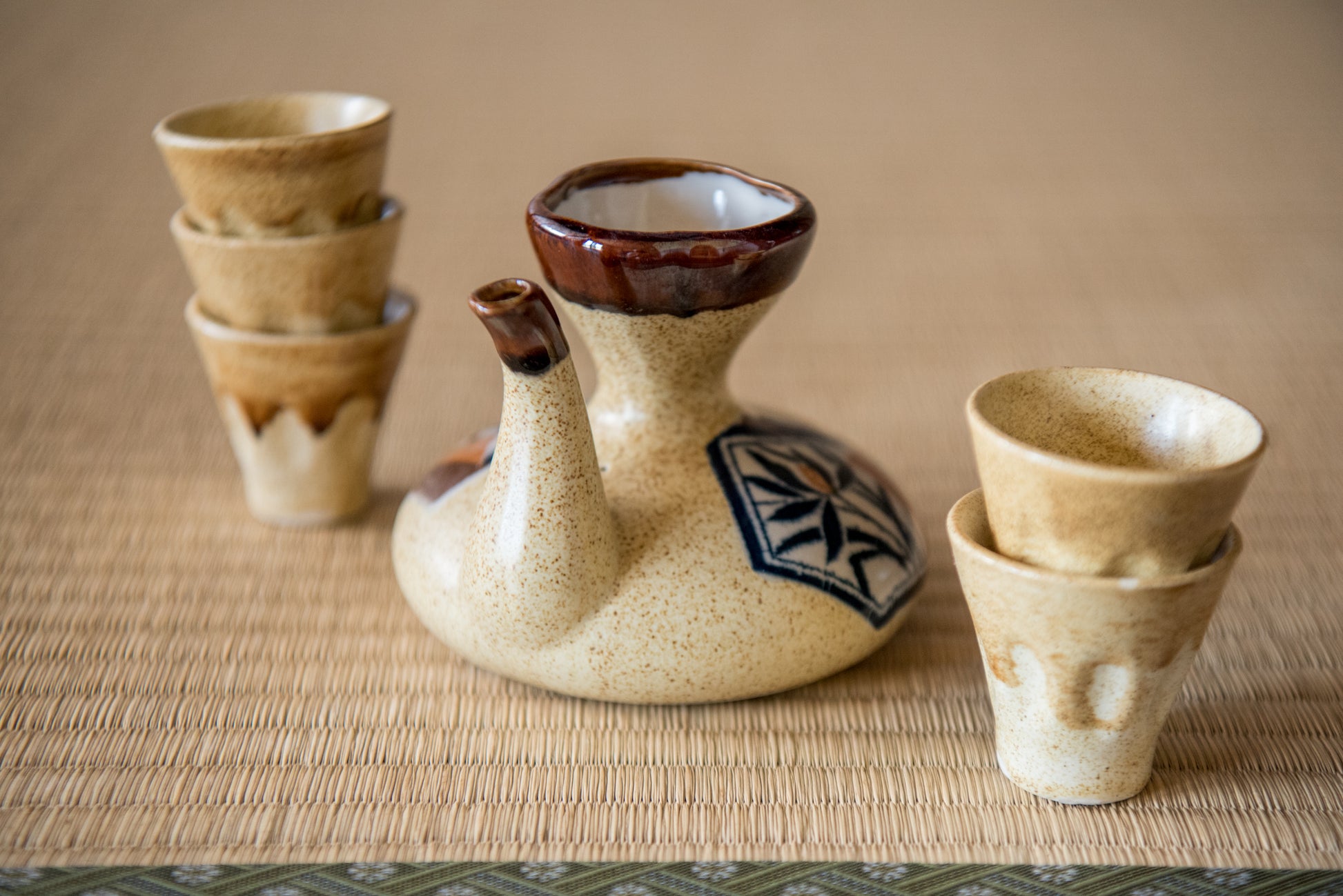 Sake Pitcher: Height ≈9.5cm, Diameter ≈12cm.